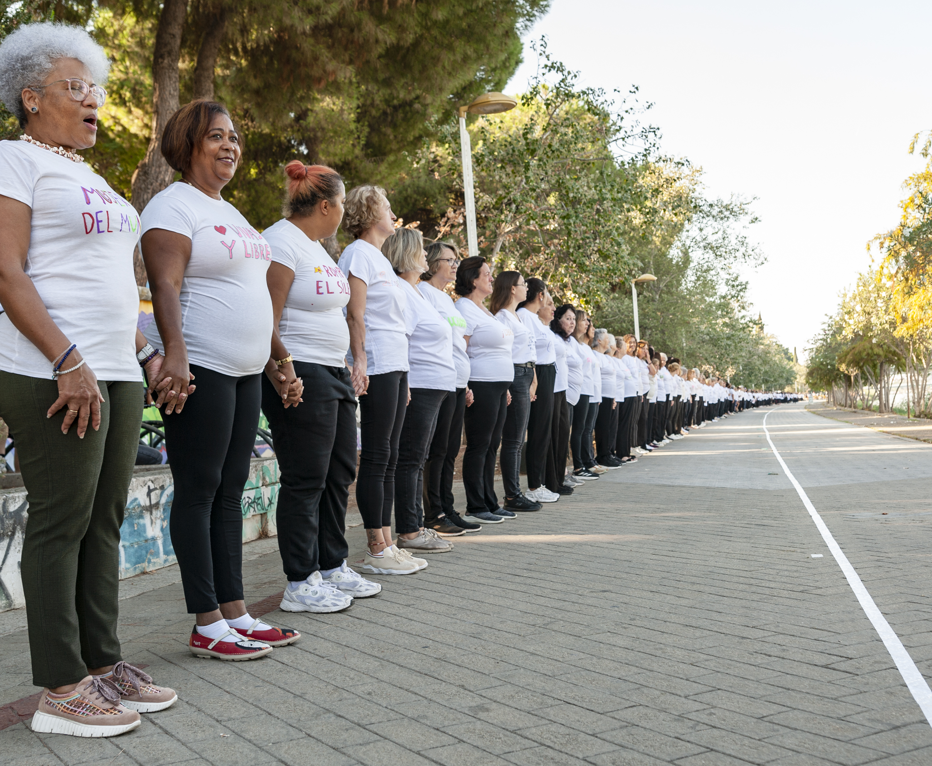 Cruzar la Línea. Mujer [es] es un proyecto de creación artística comunitaria que busca y celebra la implicación y participación de mujeres de todas las edades, procedencias e identidades, orientado a la toma de conciencia y la consecución de la igualdad en todos los ámbitos, a través de la práctica artística y performativa. Con él se aborda la práctica feminista y la representación de la mujer en su activismo cotidiano.