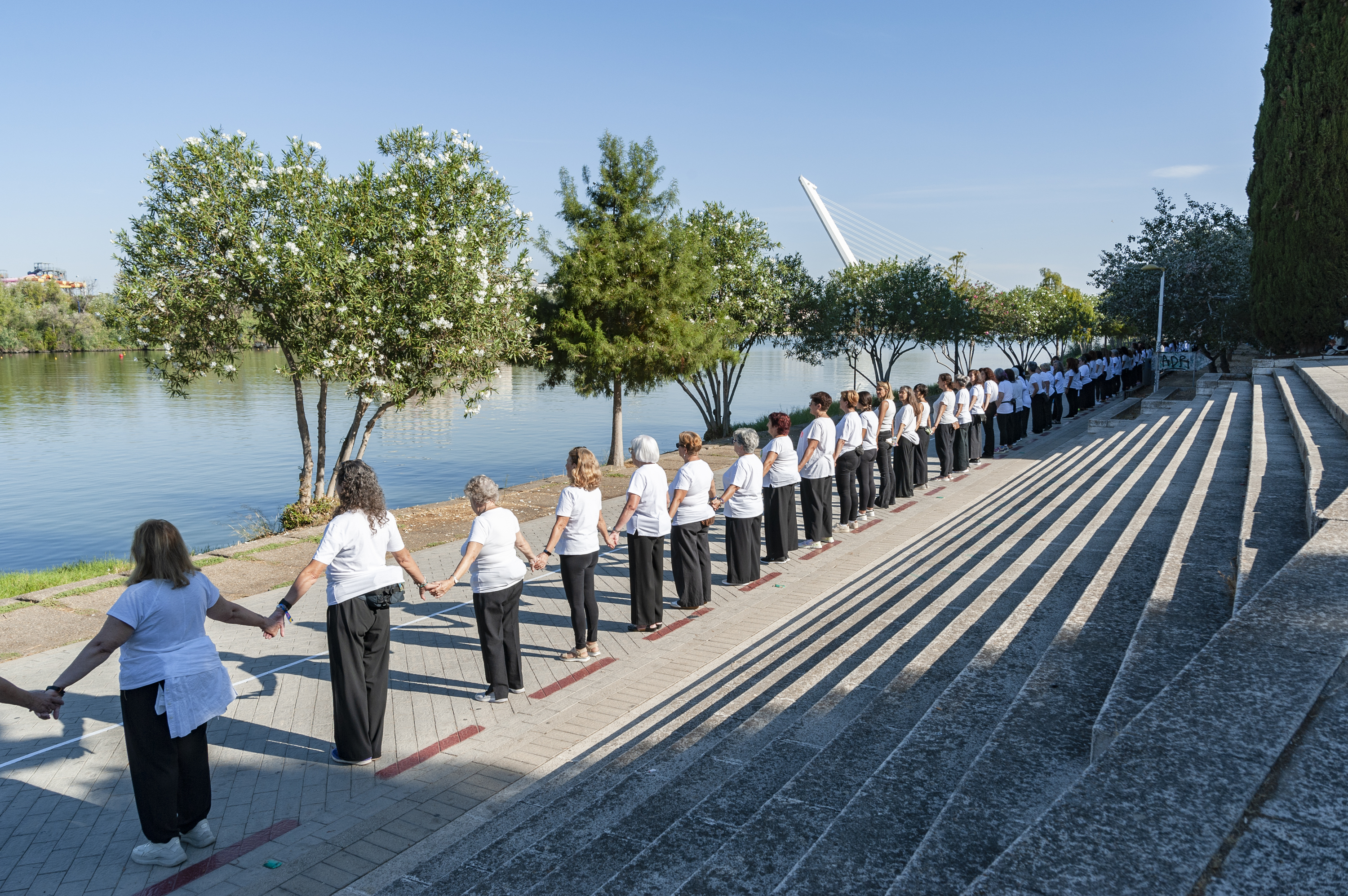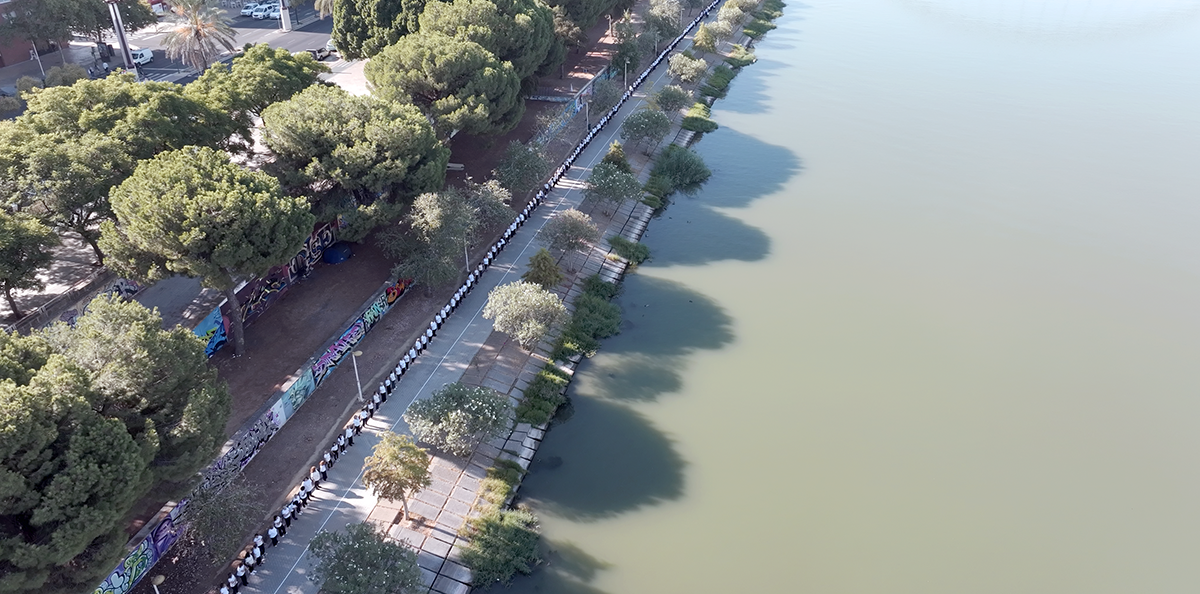 Performance: Paseo peatonal junto al río Guadalquivir en Sevilla.